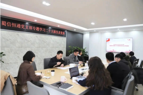 2月13日,蜀信恒通党支部开展专题学习二十大精神及党章。会议由党支部书记杨畅主持,全体党员同志参加学习。